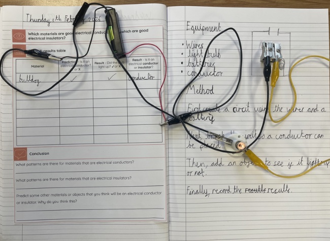This week, in Science, the children were investigating & explaining the use of materials as electrical conductors or insulators.